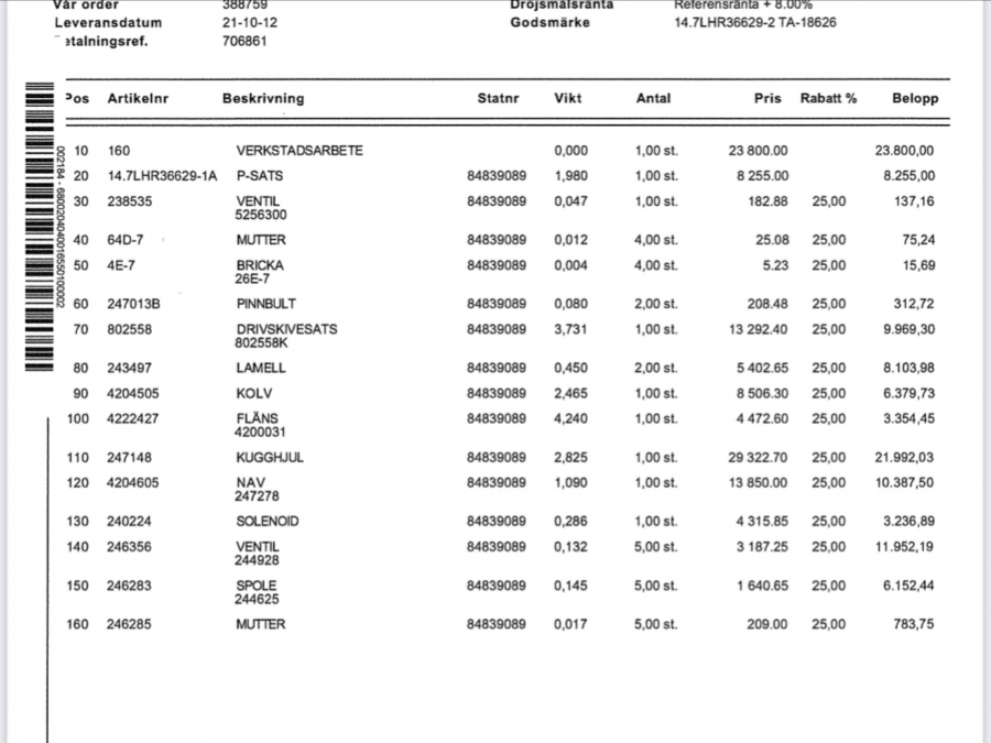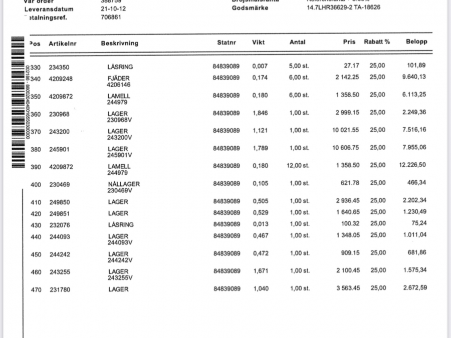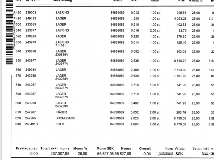 Boka frakt? Det finns ingen specifik information om frakt för just det här objektet, men om du skickar oss en förfrågan via vårt fraktformulär, så undersöker vi möjligheten. Paket, EU-pall eller större maskin? Klaravik har fraktavtal med Schenker och i de fall vi kan hjälpa till med frakt gäller det objekt som ryms i paket eller inom en EU-pall (upp till 120*80 cm och 990 kg). Det går att beställa frakt inom Sverige, dock inte till utlandet. Vid frakt på större maskiner rekommenderar vi gärna transportföretag som du kan kontakta.