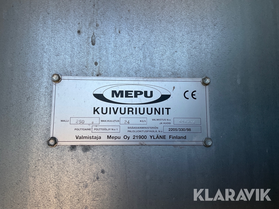 Boka frakt? Det finns ingen specifik information om frakt för just det här objektet, men om du skickar oss en förfrågan via vårt fraktformulär, så undersöker vi möjligheten. Paket, EU-pall eller större maskin? Klaravik har fraktavtal med Schenker och i de fall vi kan hjälpa till med frakt gäller det objekt som ryms i paket eller inom en EU-pall (upp till 120*80 cm och 990 kg). Det går att beställa frakt inom Sverige, dock inte till utlandet. Vid frakt på större maskiner rekommenderar vi gärna transportföretag som du kan kontakta.