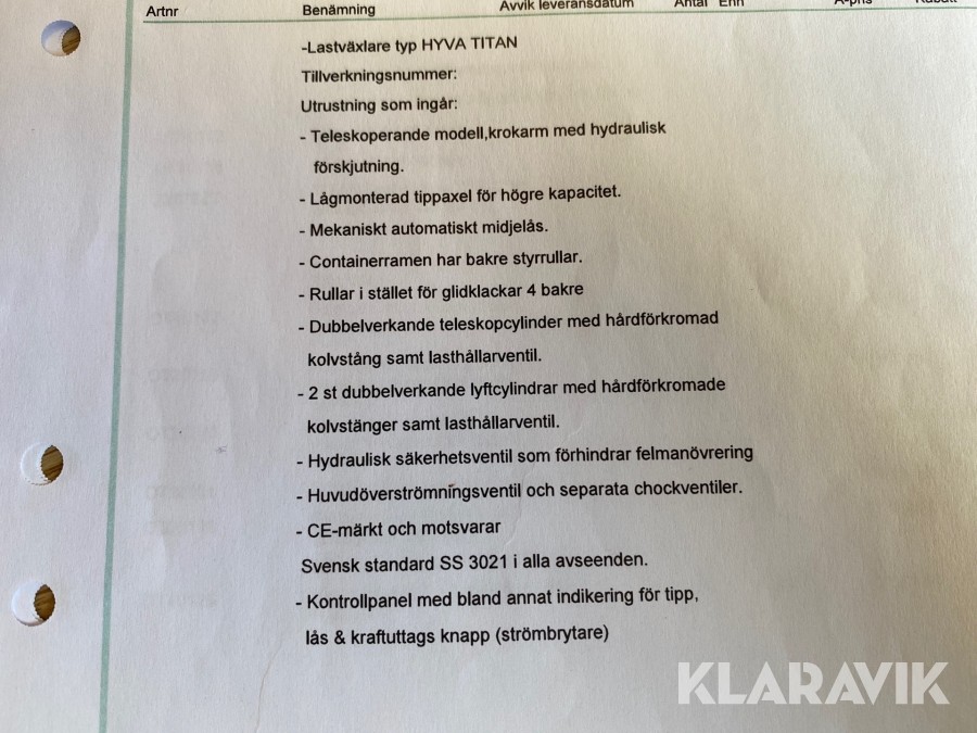 Lastväxlare Hyva Titan 20.57.SZ