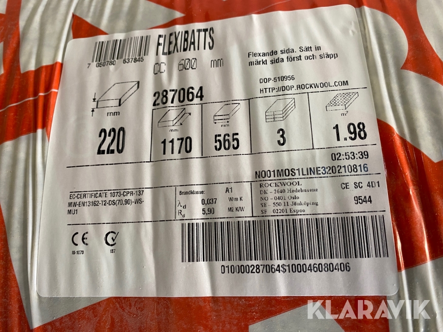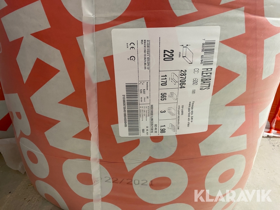 Isolering Rockwool 1170*565 220 parti 15 st