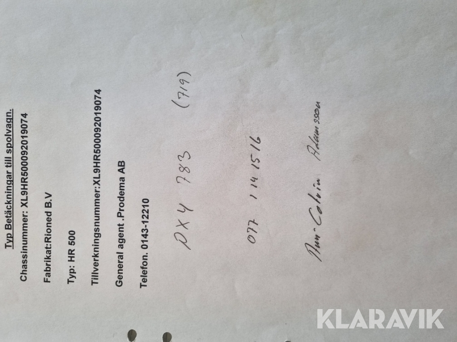 • Serie/chassinummer framgår