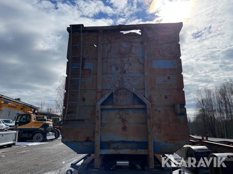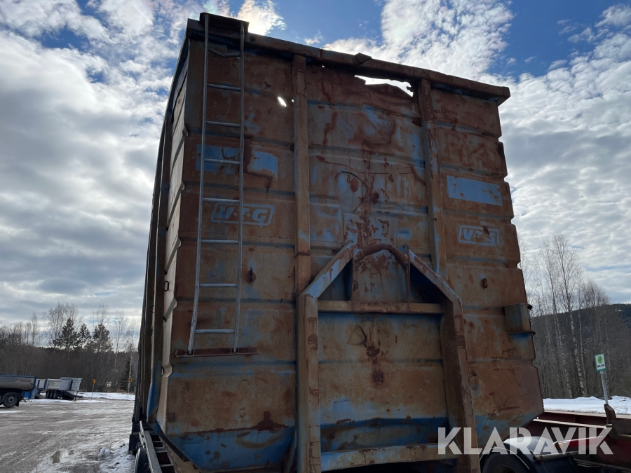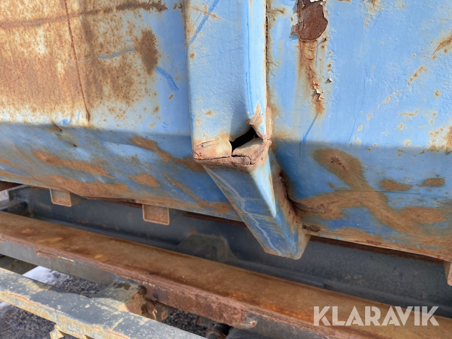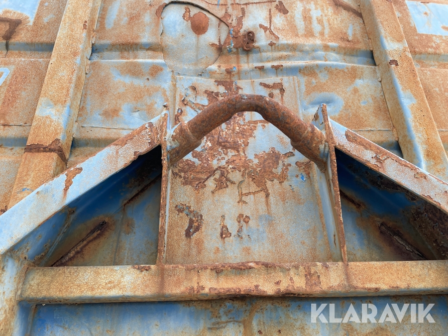 Begagnat containerflak. Buckligt och har rosthål.
