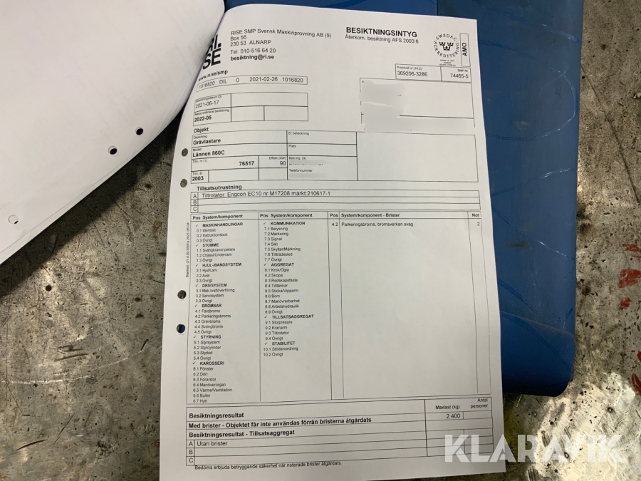 Du som köpare är skyldig att kontrollera objektet vid hämtning. Skiljer sig något avsevärt jämfört med informationen på klaravik.se? Kontakta då Klaravik innan du tar objektet från platsen. Läs fullständiga köpvillkor.