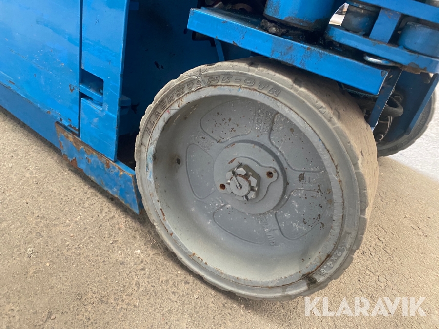 Genie GS1930 är en populär lift hos många, anledningen är att den når högt men ändå har en låg vikt. Idealisk för manövrering i trånga utrymmen. Denna lift är avsedd för inomhusbruk.