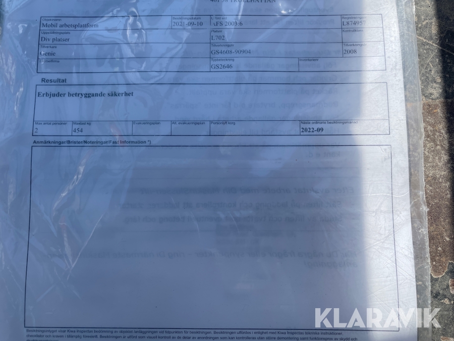 Du som köpare är skyldig att kontrollera objektet vid hämtning. Skiljer sig något avsevärt jämfört med informationen på klaravik.se? Kontakta då Klaravik innan du tar objektet från platsen. Läs fullständiga köpvillkor.