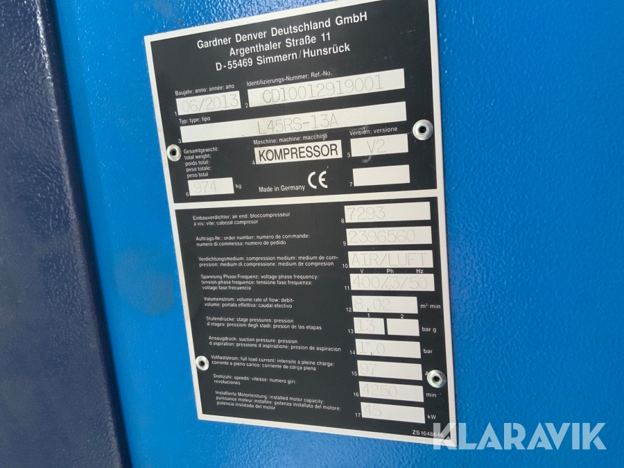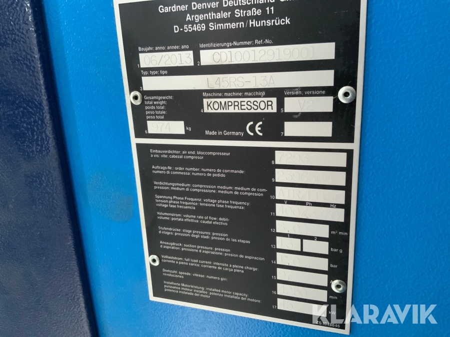 Kompressor med tork CompAir L45RS