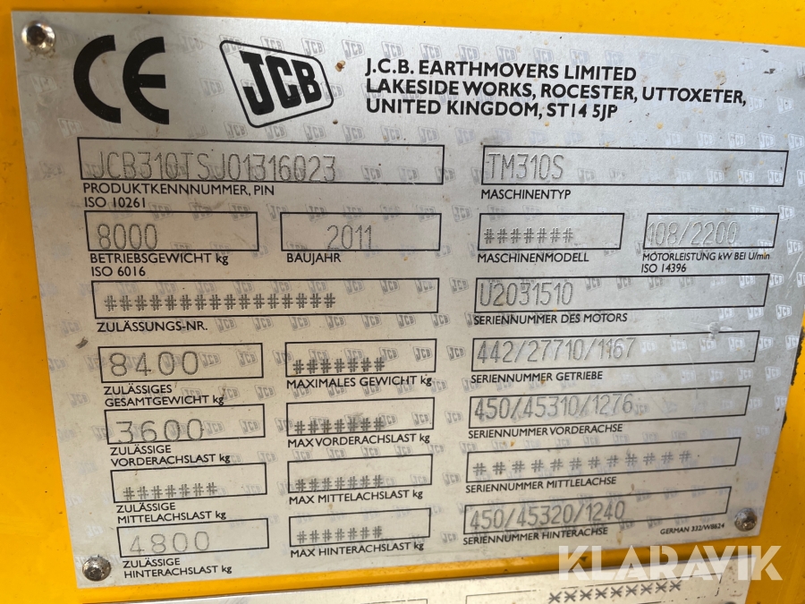 Teleskoplastare JCB TM310S med redskap