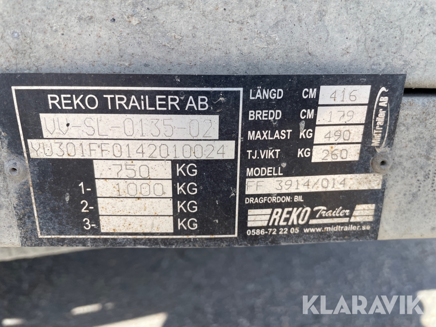 Personbilssläp Reko Trailer FF 3914