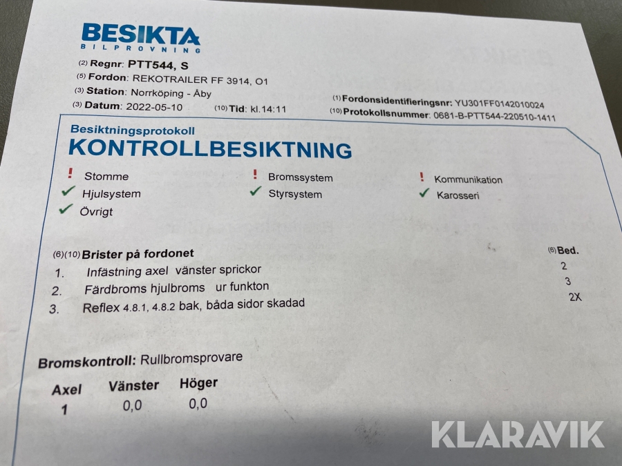 Du som köpare är skyldig att kontrollera objektet vid hämtning. Skiljer sig något avsevärt jämfört med informationen på klaravik.se? Kontakta då Klaravik innan du tar objektet från platsen. Läs fullständiga köpvillkor.