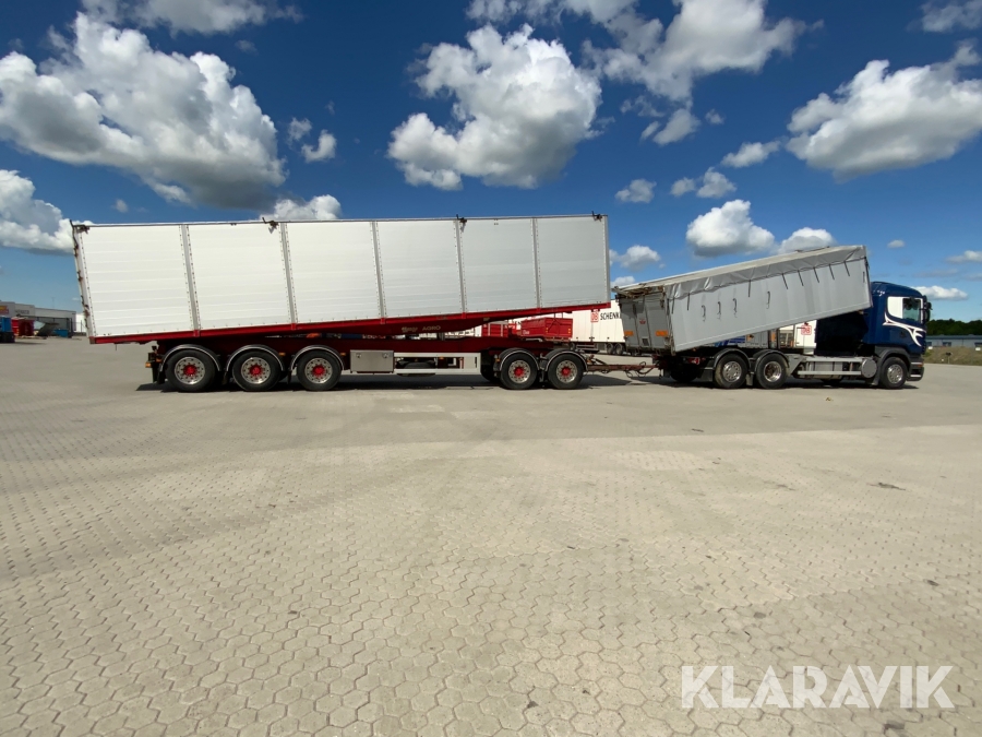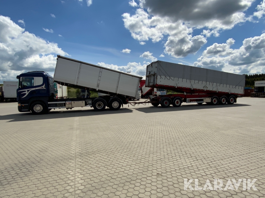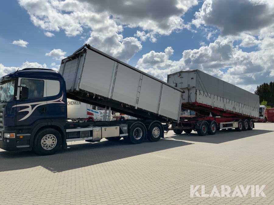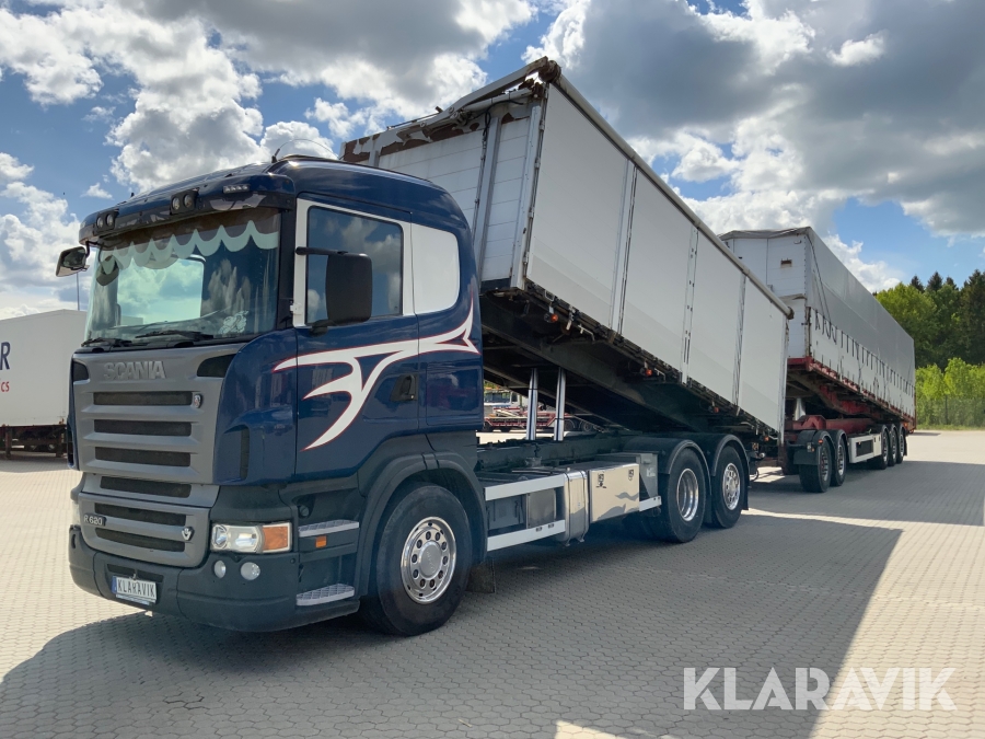 Lastbil Scania R620 V8 med Ory tippflak och 5-axlat Hogstad tippsläp