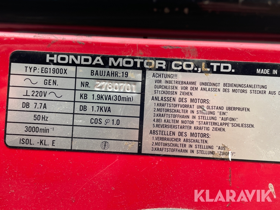 Elverk Honda EG 1900X