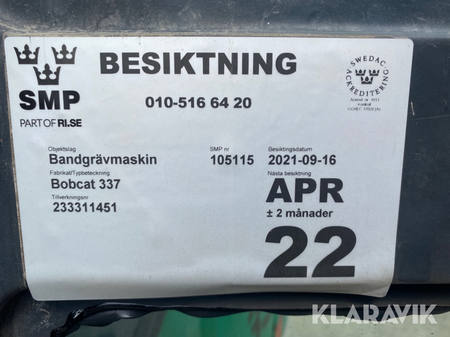 Grävmaskin Bobcat 337 D med redskap