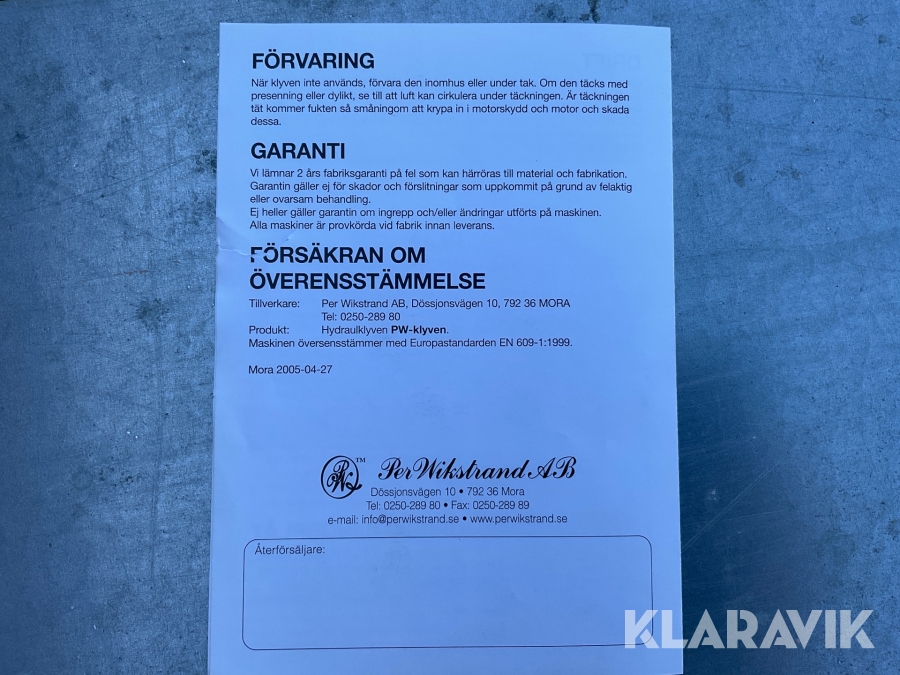 Boka frakt? Det finns ingen specifik information om frakt för just det här objektet, men om du skickar oss en förfrågan via vårt fraktformulär, så undersöker vi möjligheten. Paket, EU-pall eller större maskin? Klaravik har fraktavtal med Schenker och i de fall vi kan hjälpa till med frakt gäller det objekt som ryms i paket eller inom en EU-pall (upp till 120*80 cm och 990 kg). Det går att beställa frakt inom Sverige, dock inte till utlandet. Vid frakt på större maskiner rekommenderar vi gärna transportföretag som du kan kontakta.