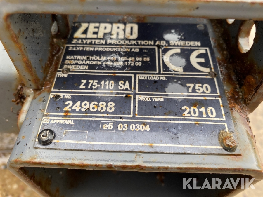 Bakgavellyft Zepro Z75-110 SA i aluminium
