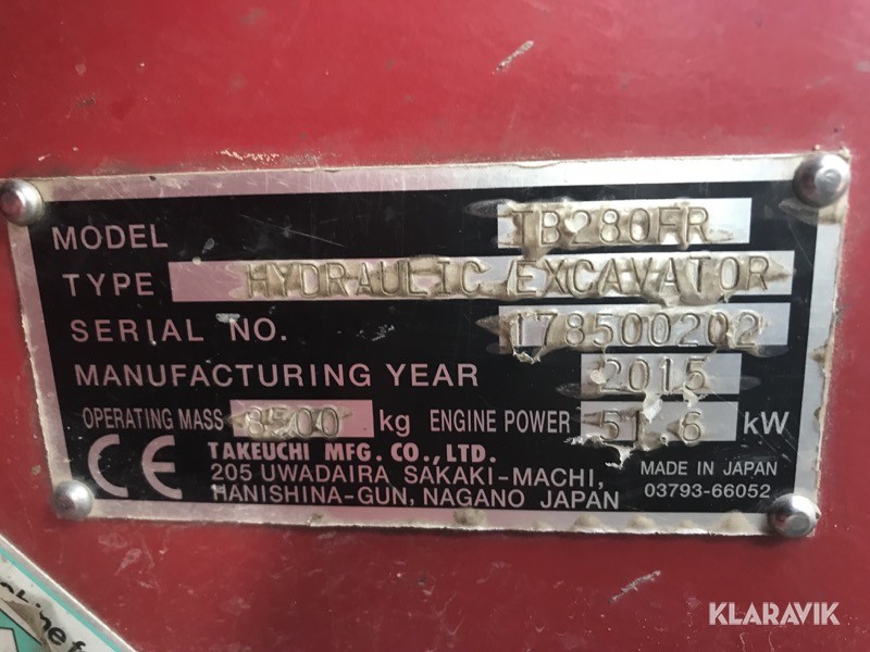Bandgrävare Takejob TB 280FR med tillbehör