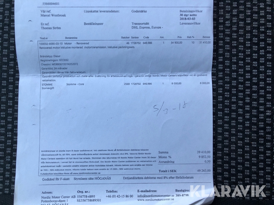 Du som köpare är skyldig att kontrollera objektet vid hämtning. Skiljer sig något avsevärt jämfört med informationen på klaravik.se? Kontakta då Klaravik innan du tar objektet från platsen. Läs fullständiga köpvillkor.