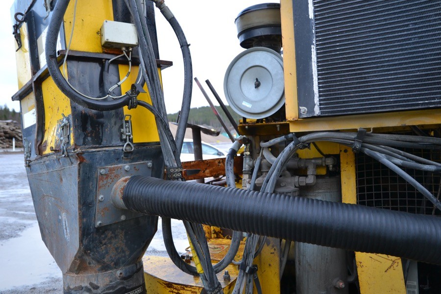 Tilläggsutrustning: Stångsmörjning, Vinsch, Hydrauliskt markstöd, Svängbar bom, Tvåhastighets körmotor, Transtronic riktningsinstrument, Sandvik slip
