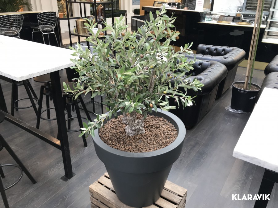 Större kruka med plastväxt