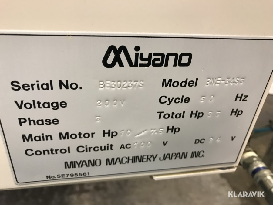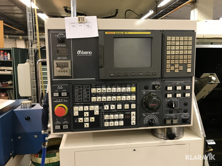 Miyano BNE-34S3 från 2001 med Fanuc Series 18i-T styrsystem, FMB turbo 5-42 stångmagasin från 2003.