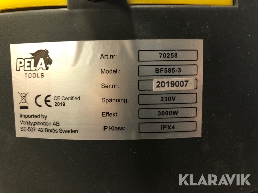 Boka frakt? Det finns ingen specifik information om frakt för just det här objektet, men om du skickar oss en förfrågan via vårt fraktformulär, så undersöker vi möjligheten. Paket, EU-pall eller större maskin? Klaravik har fraktavtal med Schenker och i de fall vi kan hjälpa till med frakt gäller det objekt som ryms i paket eller inom en EU-pall (upp till 120*80 cm och 990 kg). Det går att beställa frakt inom Sverige, dock inte till utlandet. Vid frakt på större maskiner rekommenderar vi gärna transportföretag som du kan kontakta.