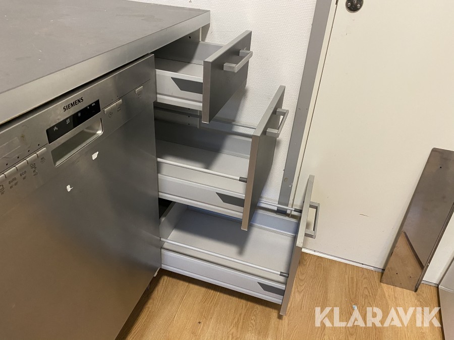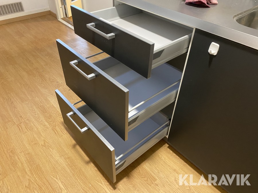 Komplett diskbänk med mjukstängande lådor, skåp och blandare