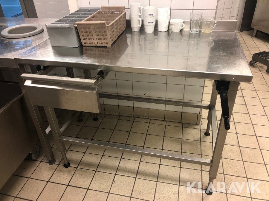 Rostfritt bord, höj o sänkbart med låda, 120x65cm