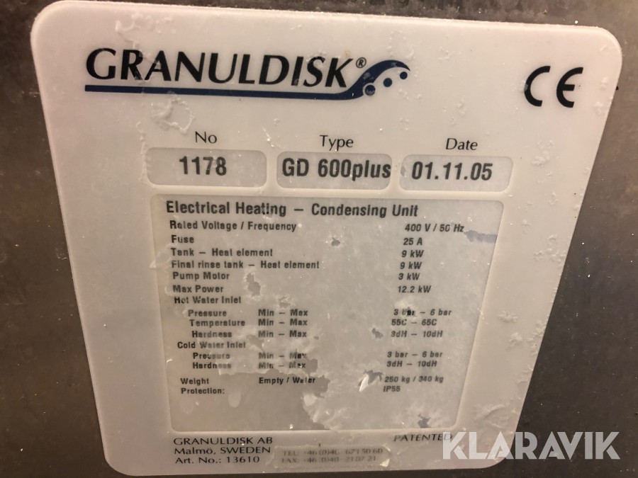 Granuldisk, GD600 plus. Osäker funktion, enl.uppgift behöver den översyn.