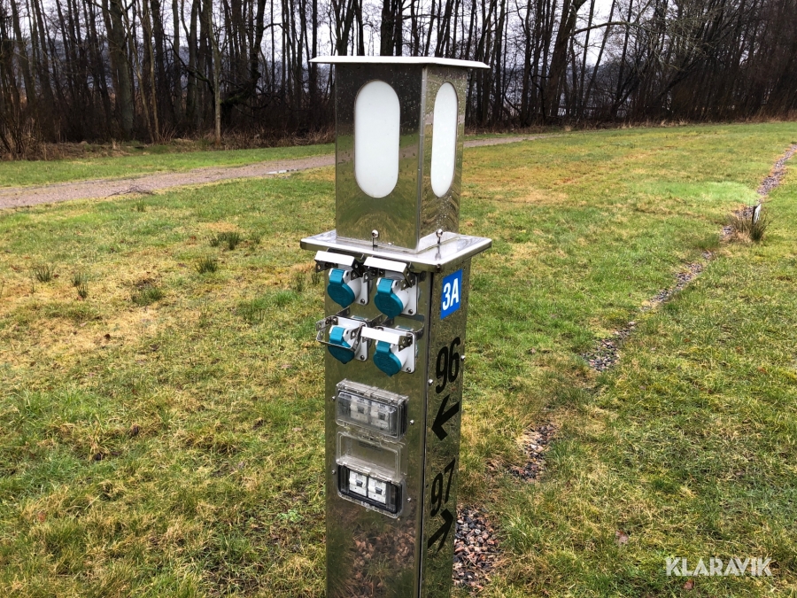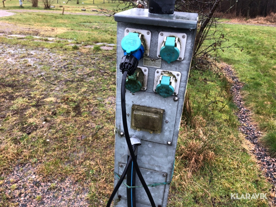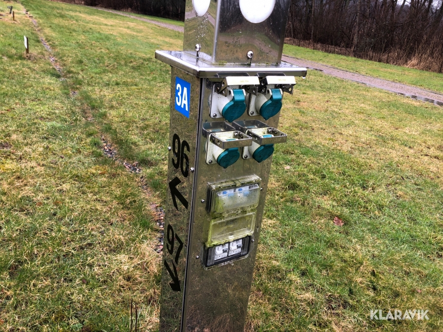 Ca 18 elstolpar med uttag för camping