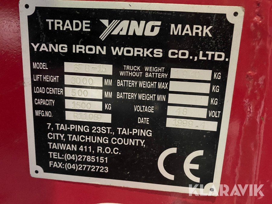 Eltruck Yang SF8-15 Nytt batteri