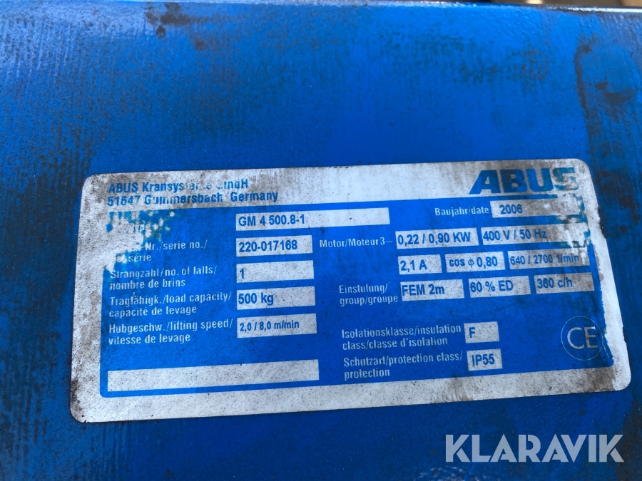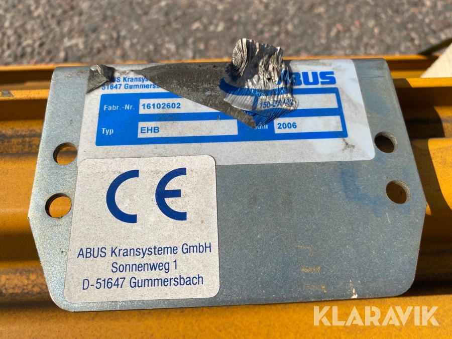 Enbalkstravers Abus 500kg med radistyrd telfer