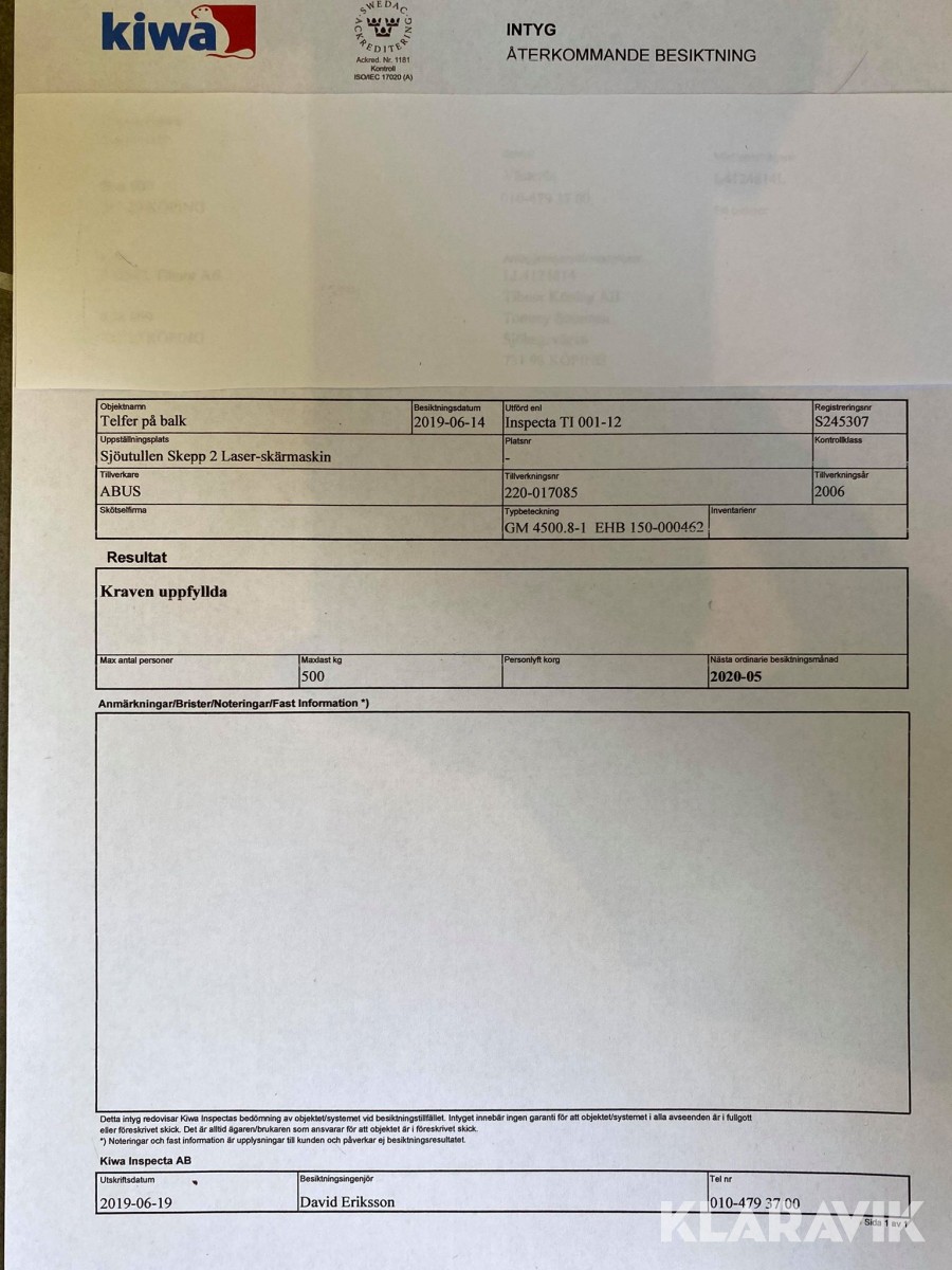 Du som köpare är skyldig att kontrollera objektet vid hämtning. Skiljer sig något avsevärt jämfört med informationen på klaravik.se? Kontakta då Klaravik innan du tar objektet från platsen. Läs fullständiga köpvillkor.