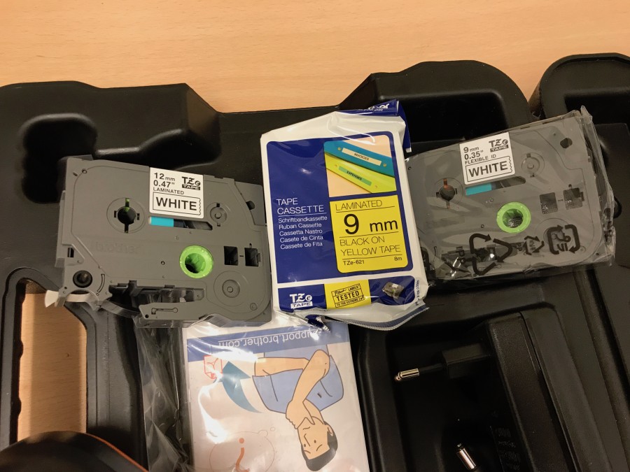 Brother etikettskrivare med väska och extra etiketter