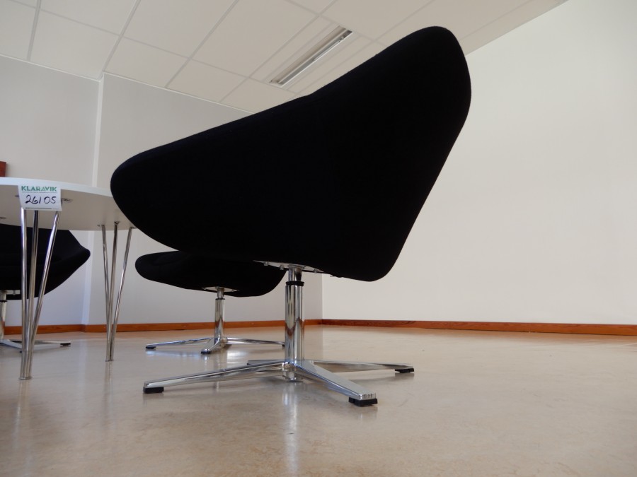 5 st tygklädda loungefåtöljer samt ett 70 cm runt soffbord. Inkl större tavla (150x75cm).