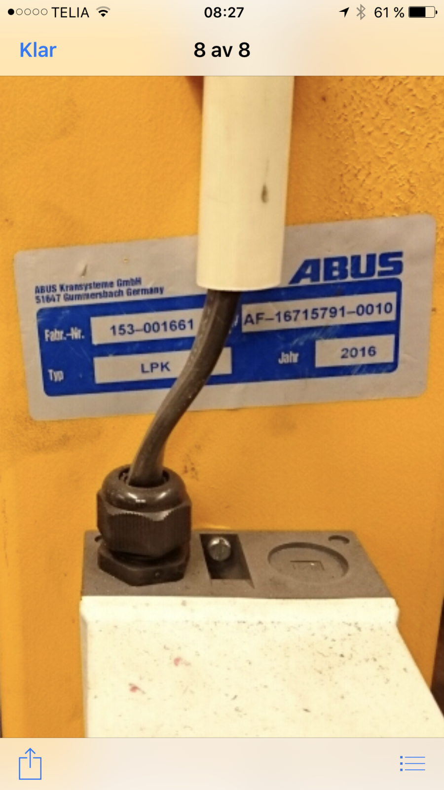 • Serie/chassinummer framgår