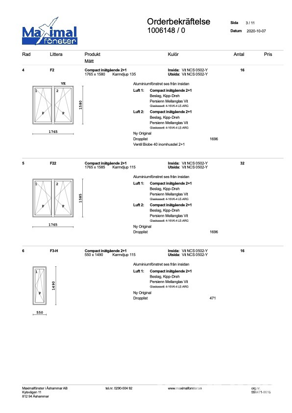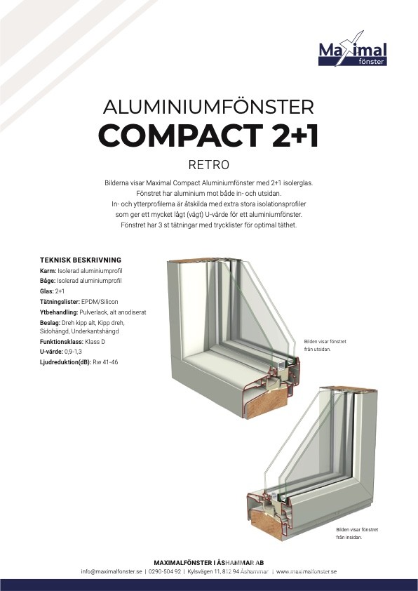 Fönster 10 st Maximal Compact F22 Retro 3-glas aluminium med persienner
