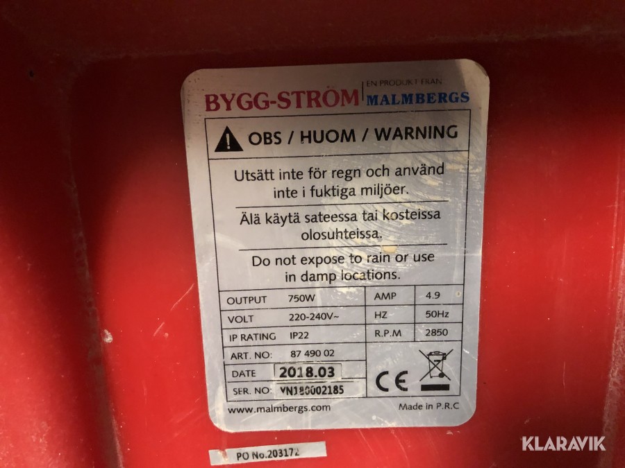 Boka frakt? Det finns ingen specifik information om frakt för just det här objektet, men om du skickar oss en förfrågan via vårt fraktformulär, så undersöker vi möjligheten. Paket, EU-pall eller större maskin? Klaravik har fraktavtal med Schenker och i de fall vi kan hjälpa till med frakt gäller det objekt som ryms i paket eller inom en EU-pall (upp till 120*80 cm och 990 kg). Det går att beställa frakt inom Sverige, dock inte till utlandet. Vid frakt på större maskiner rekommenderar vi gärna transportföretag som du kan kontakta.