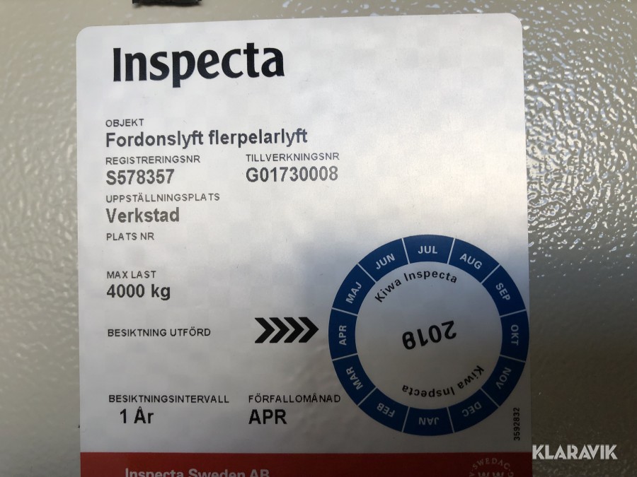 • Serie/chassinummer framgår