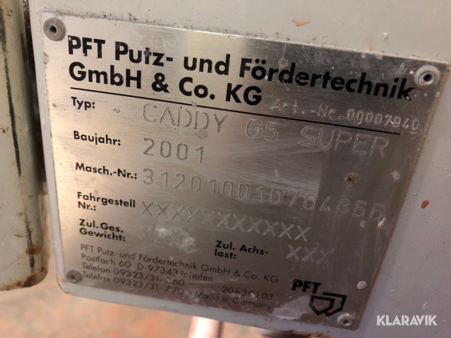 Gipsputs spruta PFT Caddy G5 super