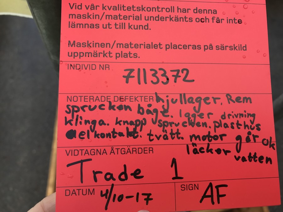 Se bild för mer information om vad som behöver repareras.