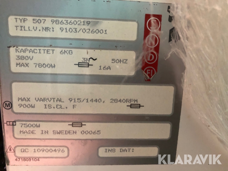 Grovtvättmaskin Osby tvättutrustningar 507