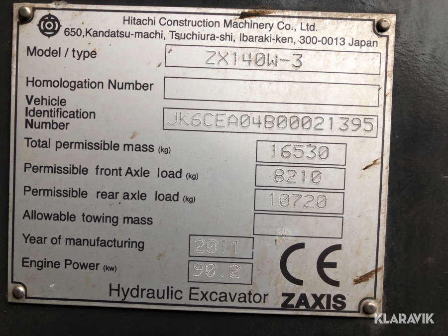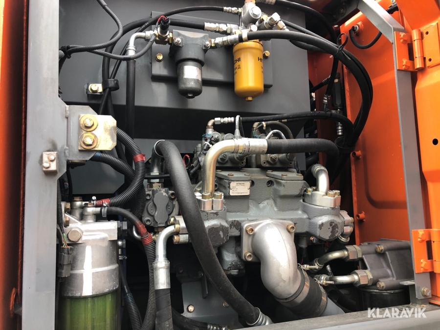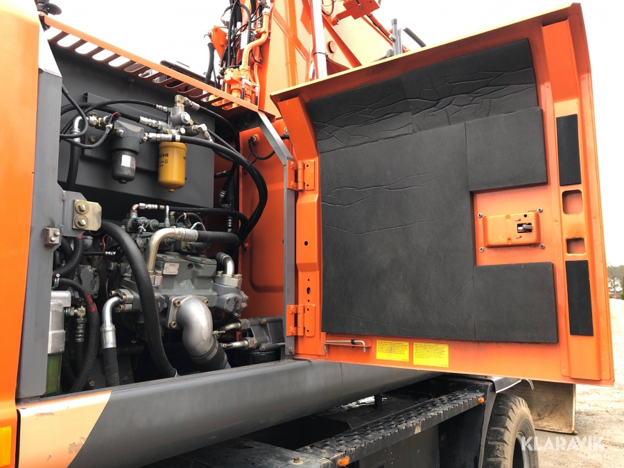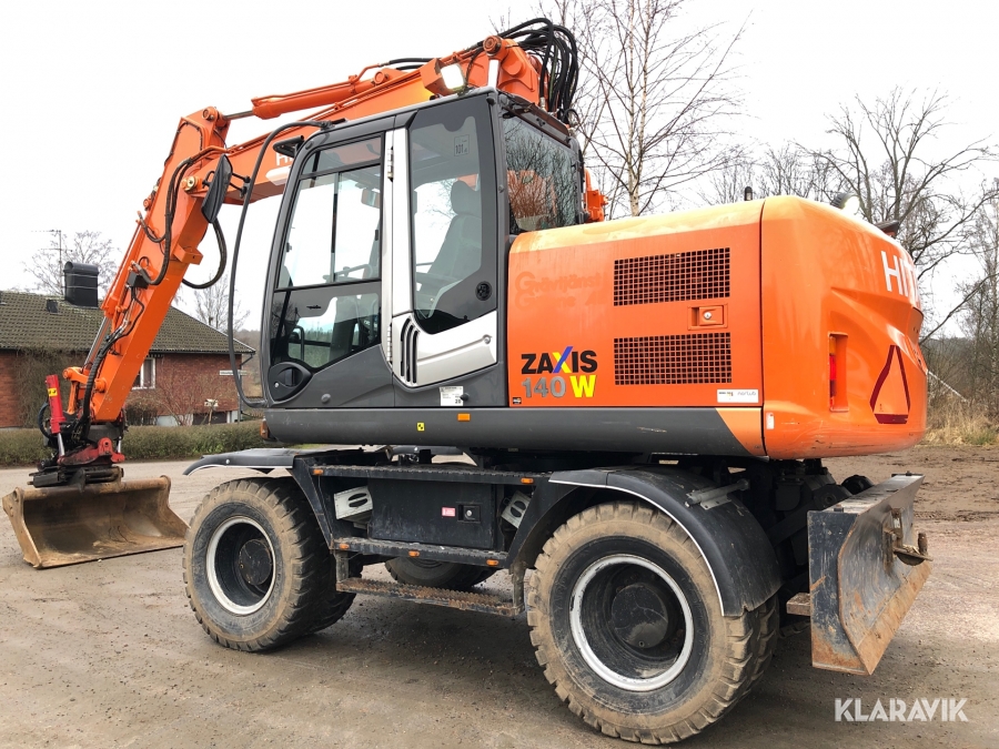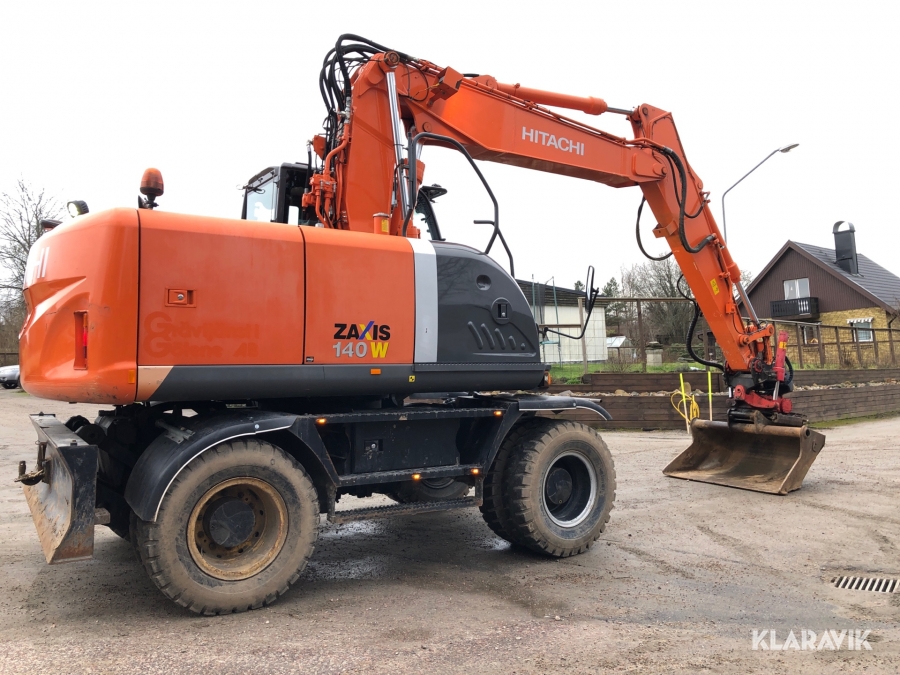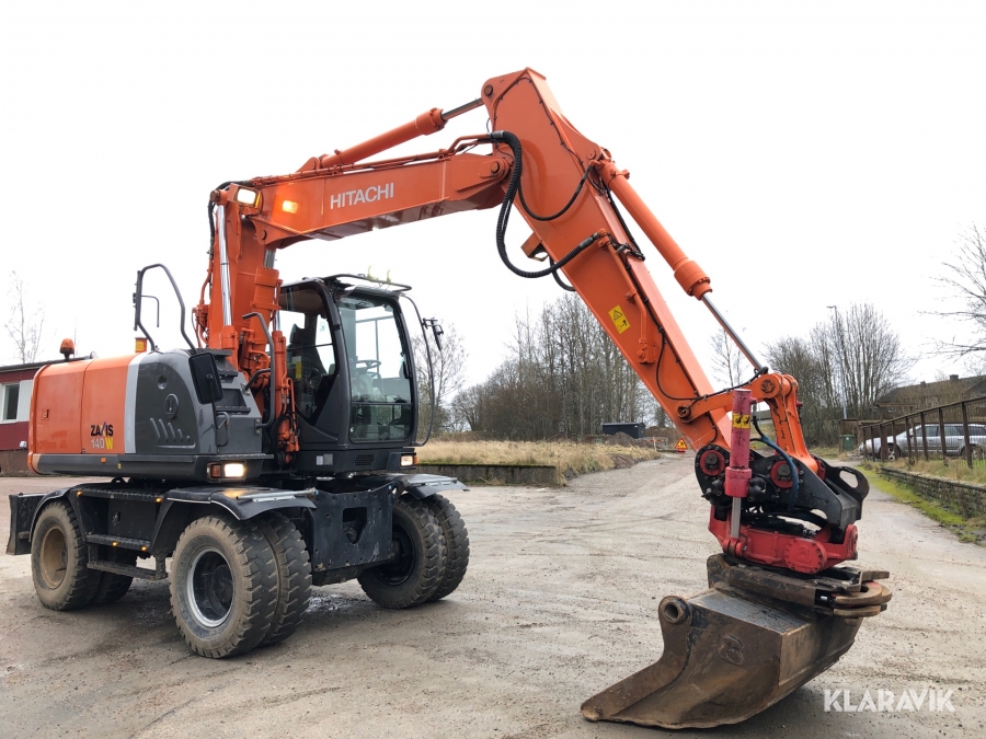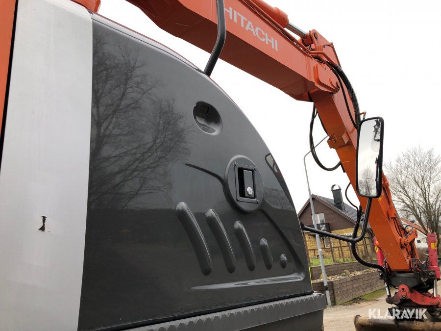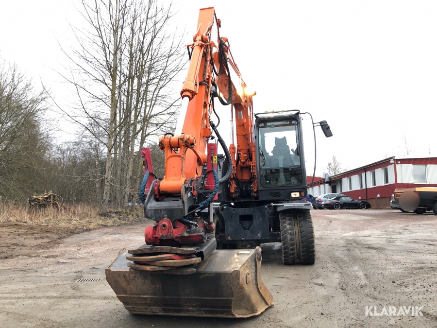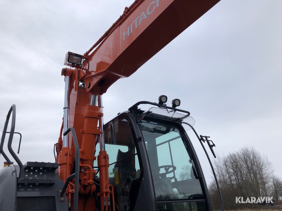 Hjulgrävmaskin Hitachi med tiltrotator, grip och skopa