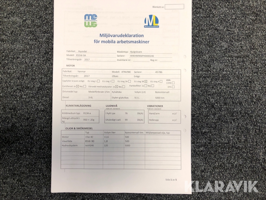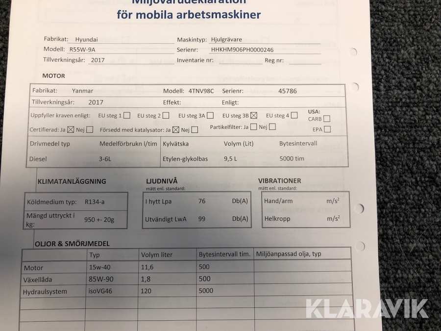 • Serie/chassinummer framgår