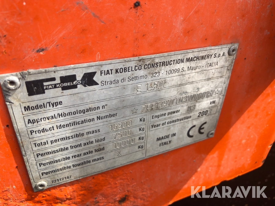 Hjulgrävmaskin Fiat Kobelco E145W med tiltrotator