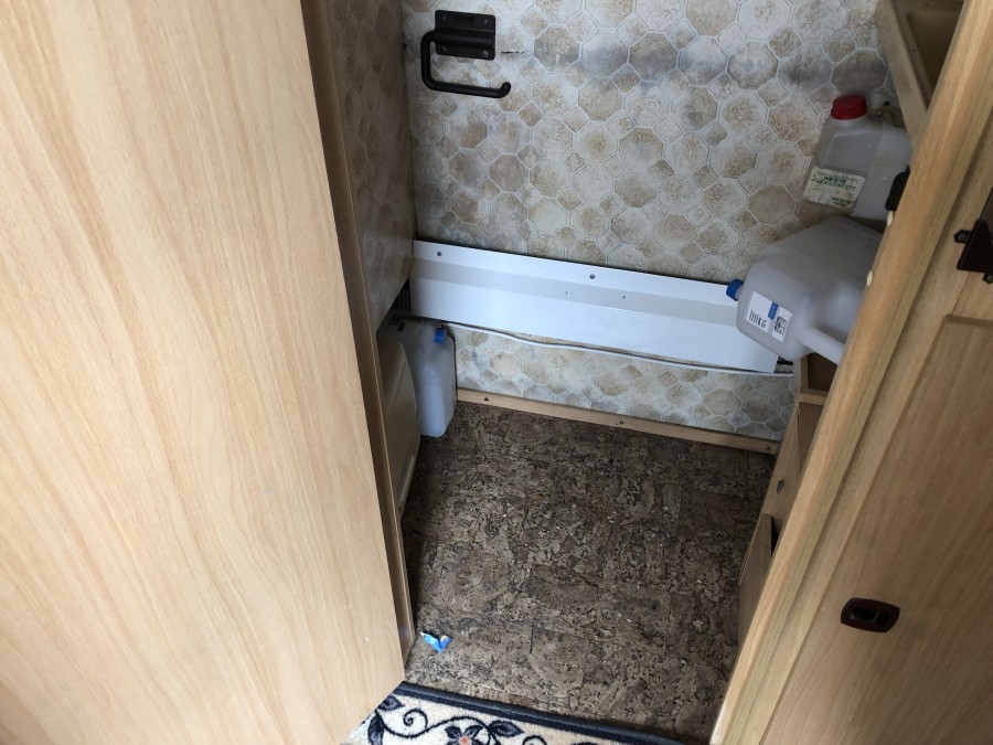 Någon form av fuktskada/ fukt i bakre väggen. Ej fuktbesiktigad.