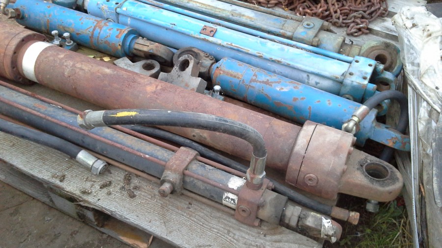 En pall hydraul cylindrar från en nedlagd verksamhet.