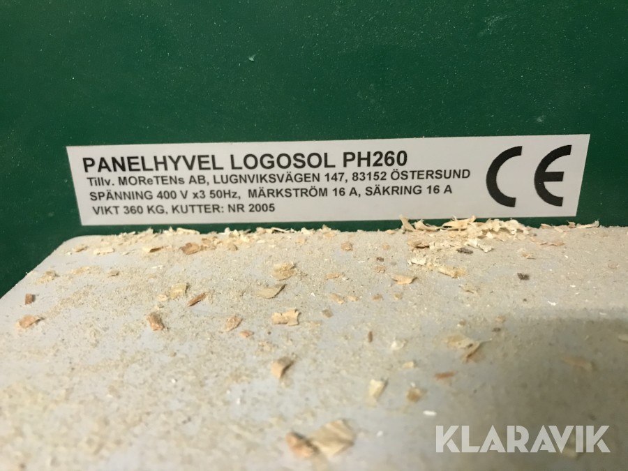 Hyvel Logosol PH 260 med spånsug och cyklon