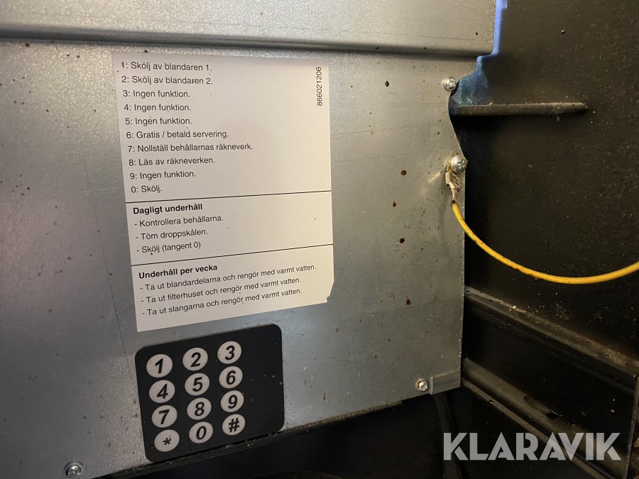 Ej fullständigt testad, slut på råvaror i behållarna.