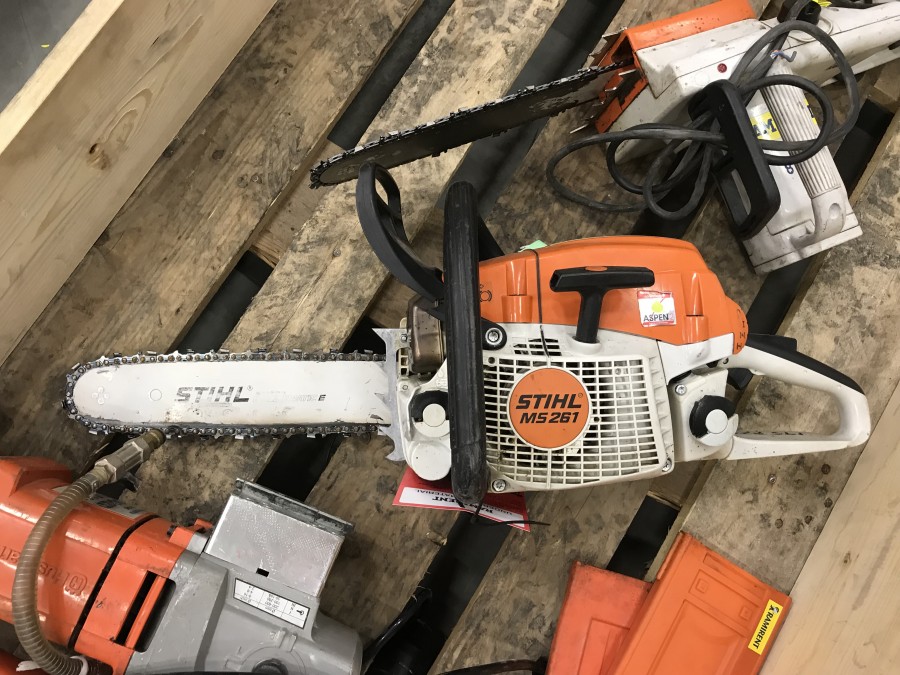 KEDJESÅG MS261 - startar. Defekt kastskydd och handtag.
