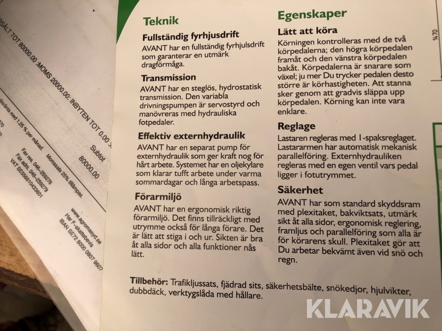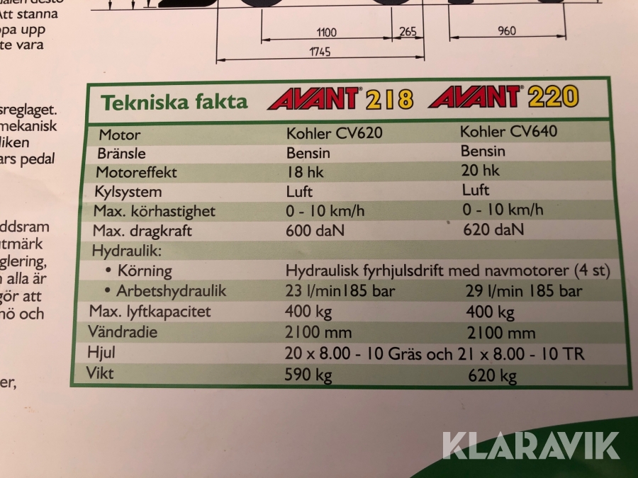 Kompaktlastare Avant 218 med tillbehör
