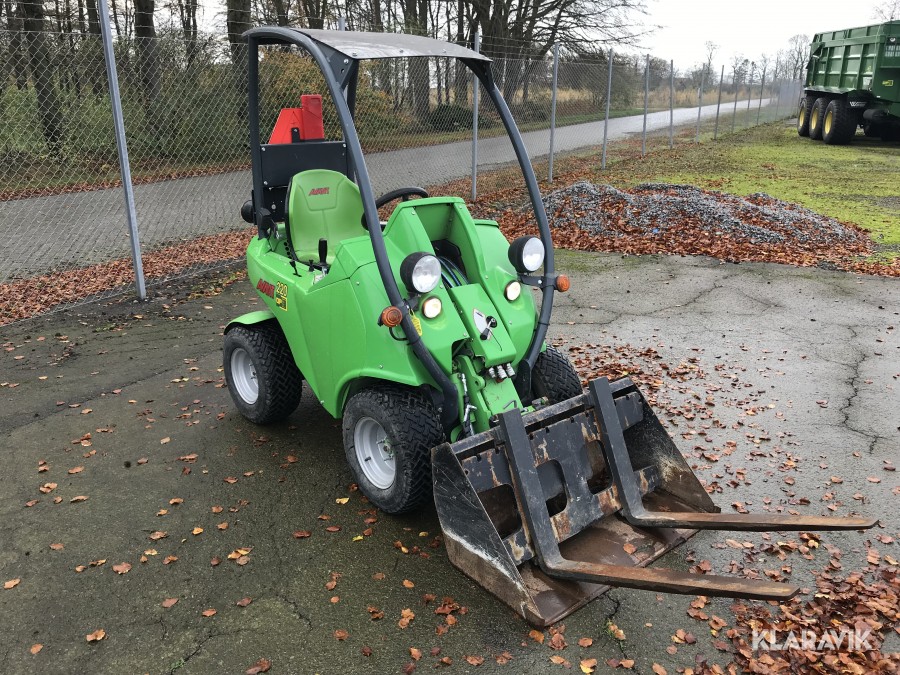 Kompaktlastare Avant 220 med skopa och pallgafflar